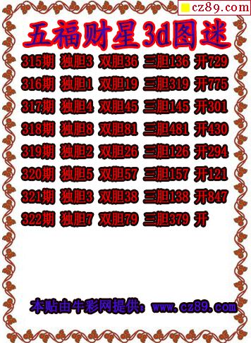 首页 > 福彩3D图谜 > 五福财星三胆2025322期3d图谜(原创)