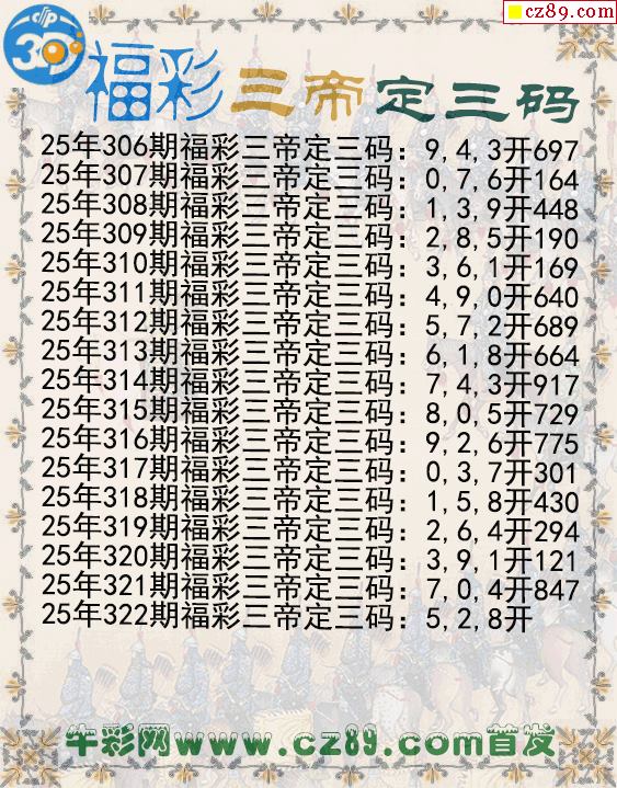 首页 > 福彩3D图谜 > 福彩三帝定三码322期3d图谜