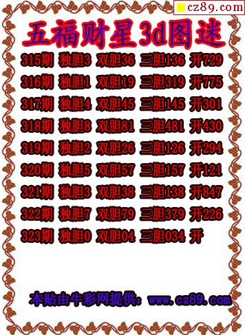 首页 > 福彩3D图谜 > 五福财星三胆2025323期3d图谜(原创)
