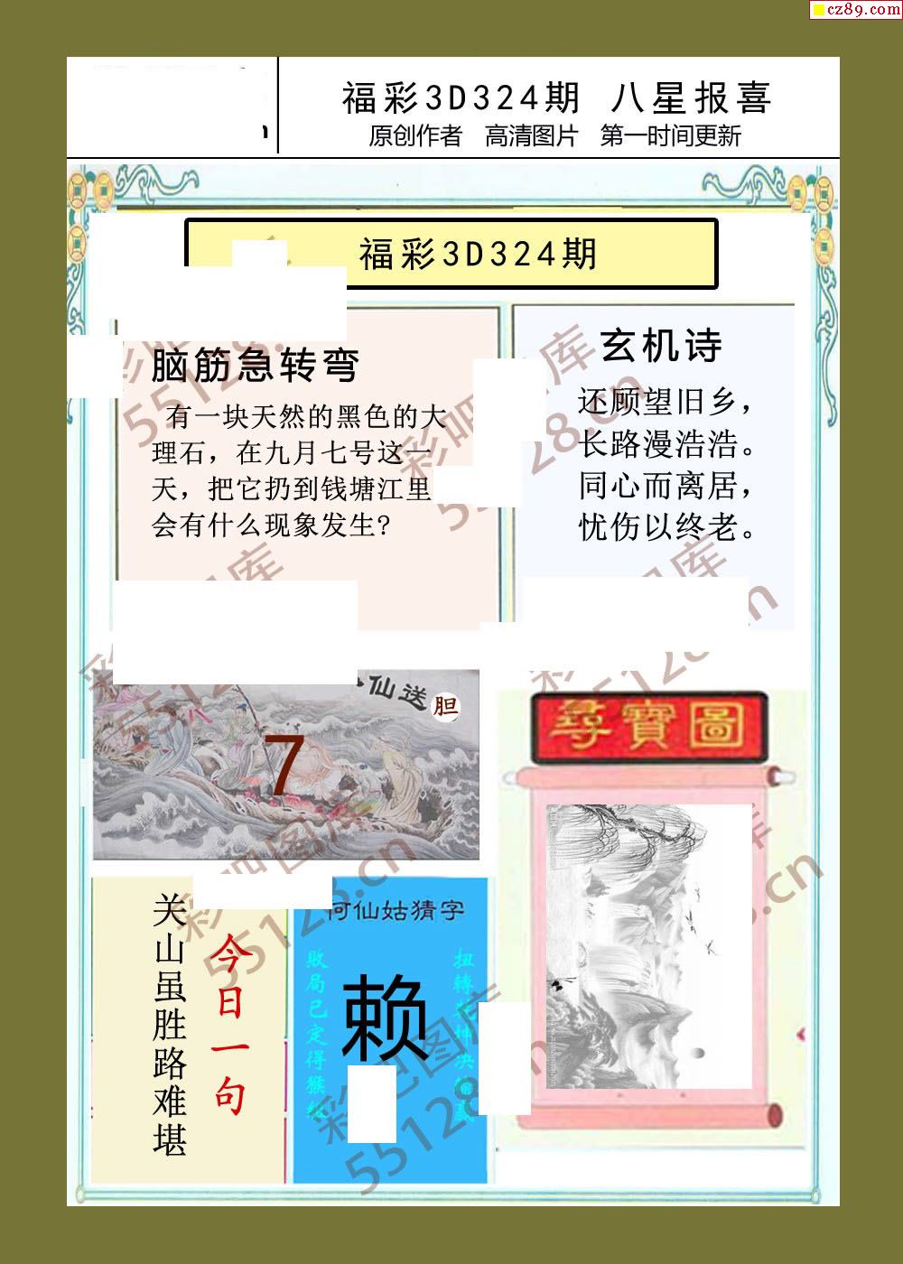 首页 > 福彩3D图谜 > 八星报喜25年324期福彩3d画谜