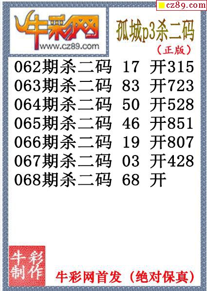 孤城杀码068期体彩P3图谜(原创)