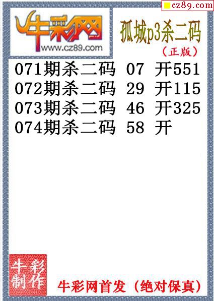 孤城杀码074期体彩P3图谜(原创)