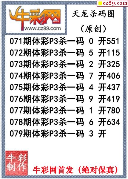 天龙杀码079期体彩P3图谜(原创)